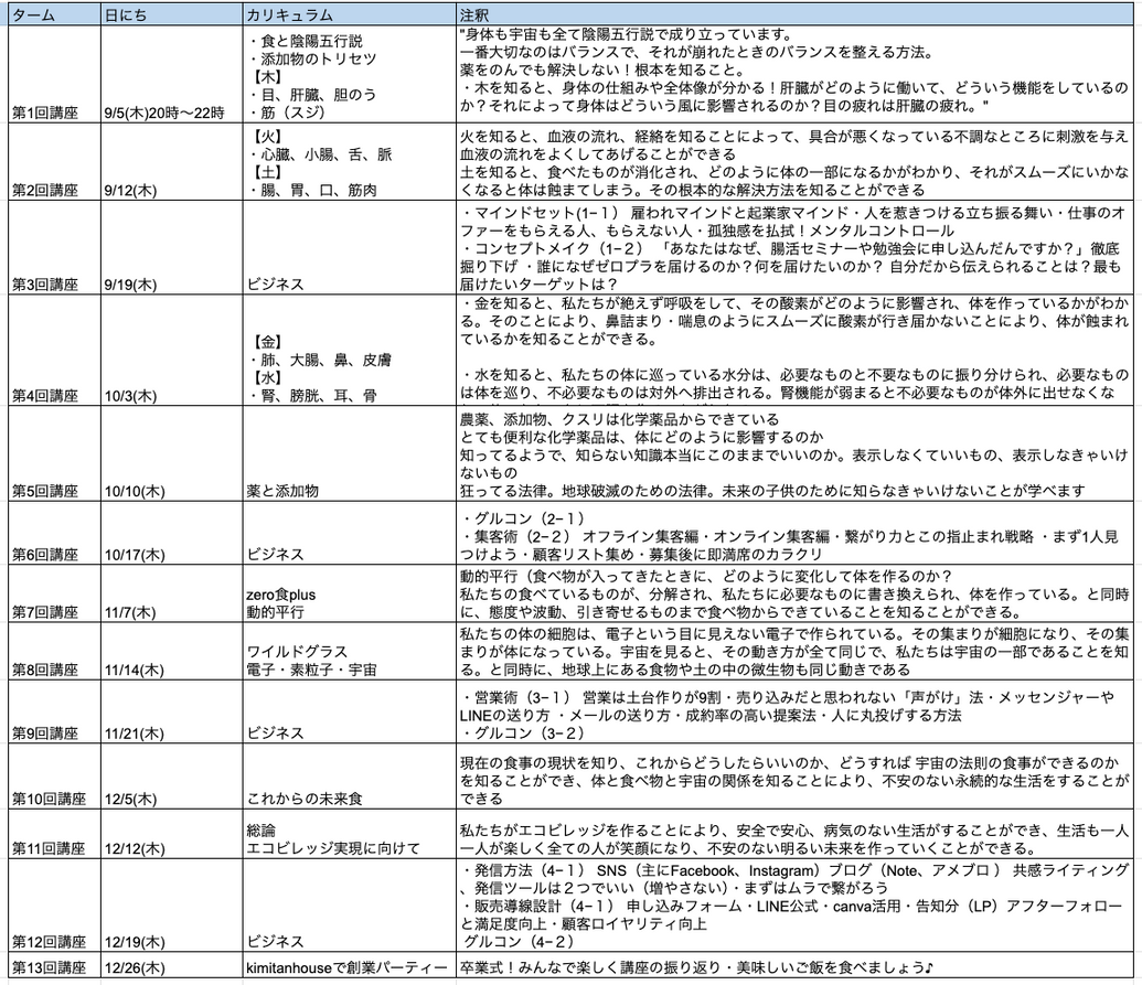 0期生/カリキュラム内容・詳細/ビジネス基礎講座内容/0期生限定料理教室について